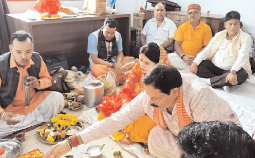 रायगढ़। भारतीय जनता पार्टी की जिलाध्यक्ष की जवाबदारी मिलने के बाद से ही अरुणधर दीवान जी पूरे जिले में प्रवास कर कार्यकर्ताओं का दर्शन लाभ लेकर उनसे संवाद स्थापित कर रहे है। आज जिला भाजपा कार्यालय में पार्टी की महत्वपूर्ण कार्यशाला आयोजित होनी थी उसके पूर्व जिला भाजपा अध्यक्ष अरुणधर दीवान ने सपत्नीक भगवान सत्यनारायण की कथा श्रवण कर विधिवत पूजा अर्चना कर भाजपा परिवार के साथ अपने नवीन दायित्व के निर्वहन के लिए सभी से आशीर्वाद मांगा।