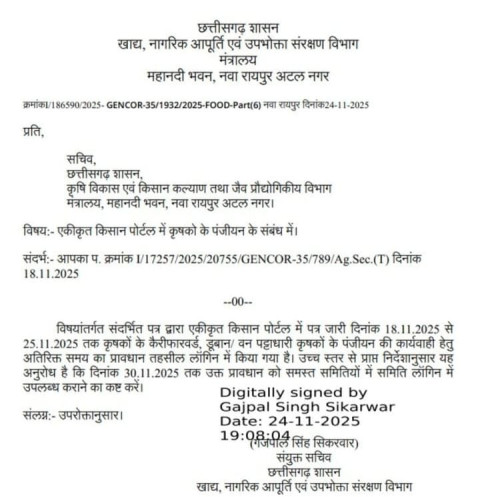 रायपुर। छत्तीसगढ़ शासन के खाद्य एवं नागरिक आपूर्ति विभाग ने किसानों को बड़ी राहत
