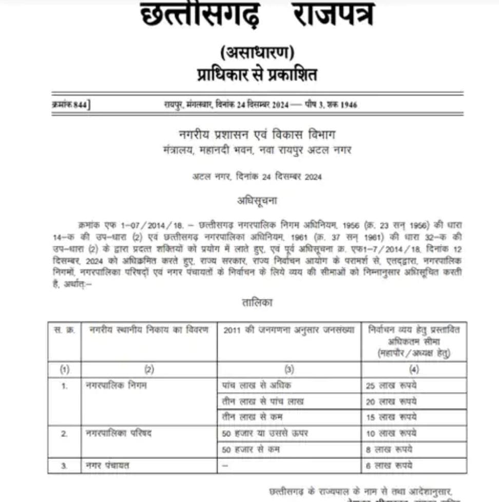 निकाय चुनाव:6 लाख खर्च कर सकेंगे नगर पंचायत अध्यक्ष