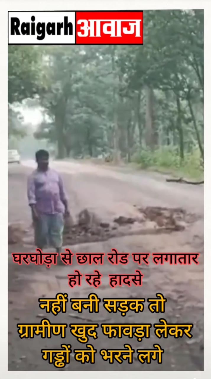 छत्तीसगढ़ के रायगढ़ जिले के छाल से घरघोड़ा जाने वाले रास्ते में कई गड्ढे हैं। देउरमार के पास इन गड्ढों की वजह से लगातार दुर्घटनाएं भी हो रही हैं। कई बार इस सड़क को बनाने की मांग की गई, लेकिन सड़क नहीं बन पाने से ग्रामीण खुद ही फावड़ा लेकर गड्ढों को भरने लगे।