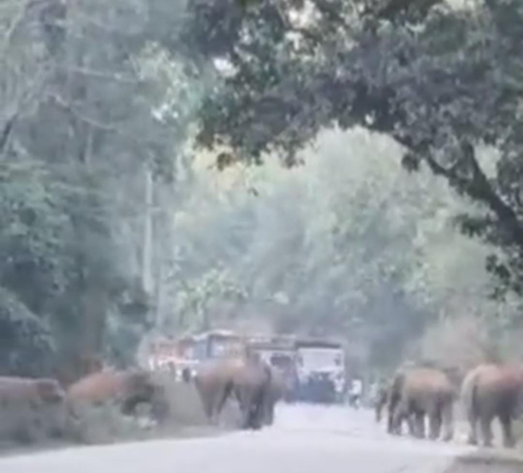 इसके बाद वे वापस जंगल की ओर चले गए। बताया जा रहा है कि 11 नवंबर की शाम को भी यही हाथी का दल सड़क पर काफी देर तक खड़ा रहा।
