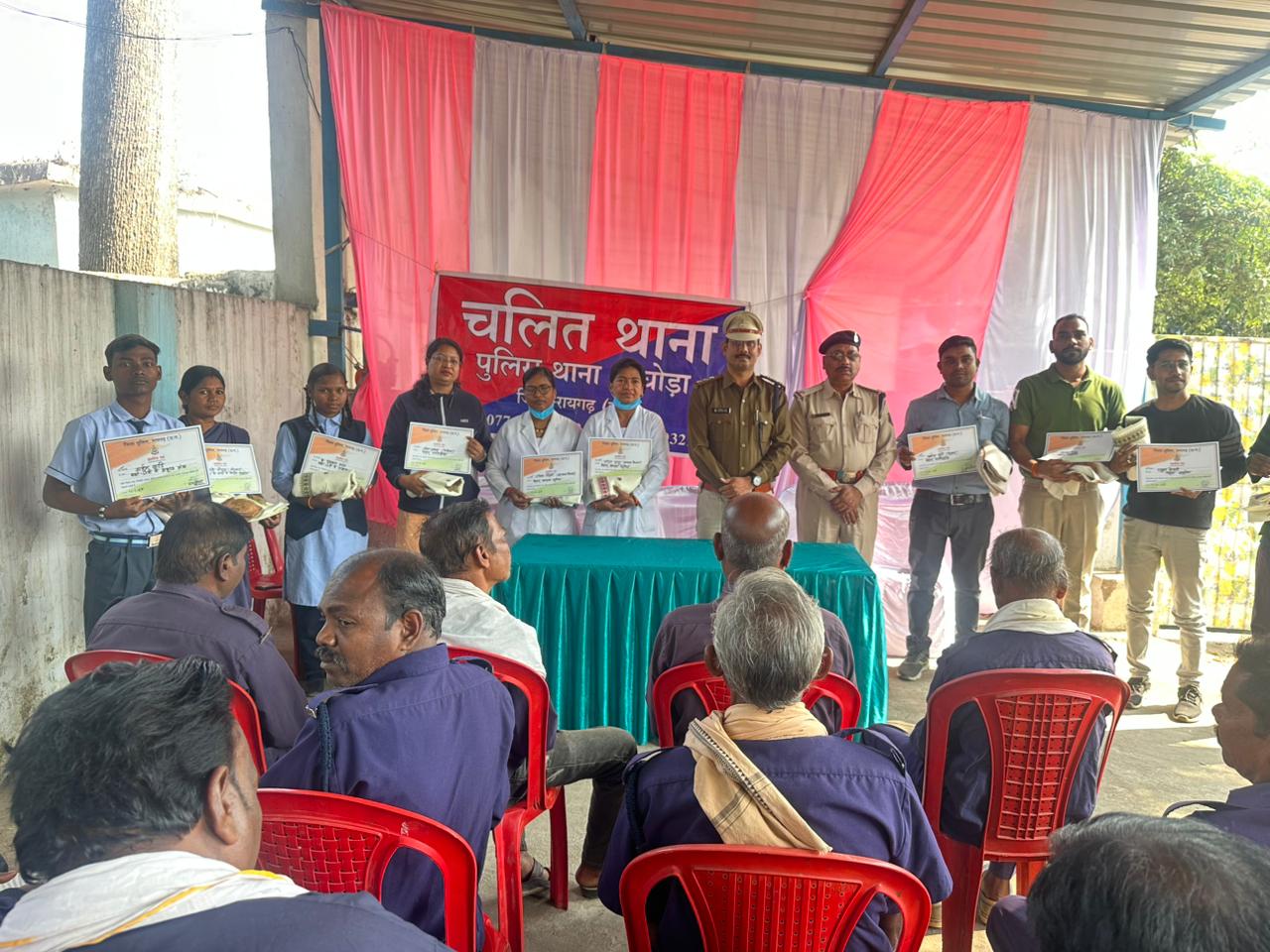थाने में मेधावी छात्रों, शिक्षकों, स्वास्थ्य कर्मियों, ग्राम कोटवारों और पंचायतकर्मियों को शॉल, श्रीफल और प्रशस्ति पत्र देकर सम्मानित किया गया। इस दौरान थाना प्रभारियों ने ग्रामीणों को भरोसा दिलाया कि पुलिस उनके हर सकारात्मक प्रयास में सहयोग करेगी।